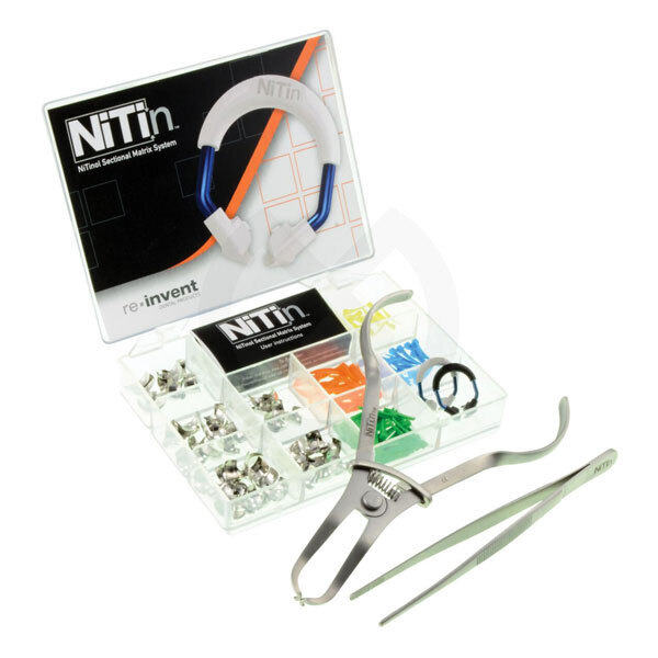 Sistema de matrices seccionales NiTin compuesto por anillos, matrices, cuñas, fórceps y pinzas. para restauraciones de clase II.