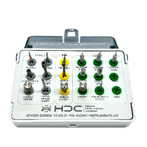 Un kit único que incluye tanto el instrumental para la inserción del Spider Screw K1-K2-Z-Regular