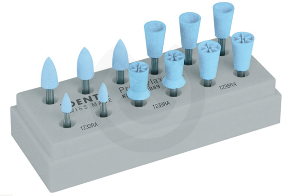 Limpieza y pulido no agresivo de los dientes naturales. Para eliminar depósitos en los dientes sin utilizar pasta abrasiva ya que el pulidor integra el abrasivo. A brasión mínima del esmalte y dentina. Se utilizan con refrigeración de spray.