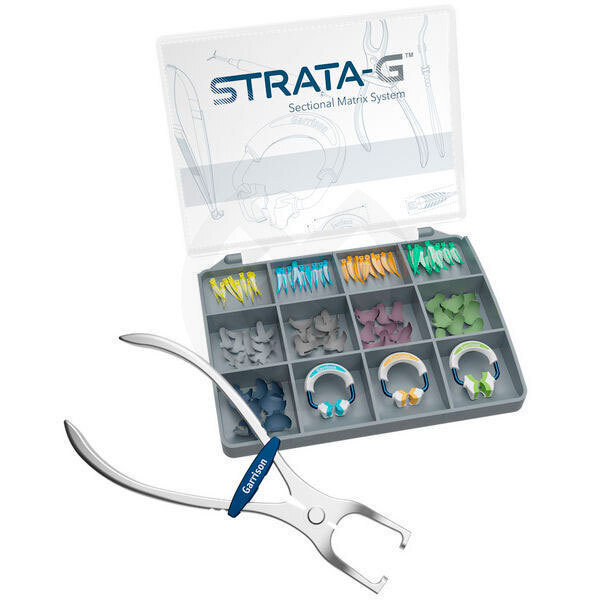 El sistema de matriz seccional Strata-G™ se ha diseñado para crear puntos de contacto anatómicos y estrechos en restauraciones de composites de clase II.