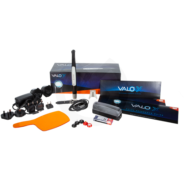 La lámpara de polimerización VALO X ha sido diseñada desde cero para proporcionar durabilidad, potencia, accesibilidad y la versatilidad necesaria. Su construcción de aluminio de grado aeroespacial proporciona una durabilidad extrema a la vez que reduce el calor generado. El diseño de la pieza de mano, compacta y ergonómica brinda un acceso óptimo a todas las regiones de la boca con total comodidad tanto para el odontólogo como el paciente. VALO X tiene una lente de mayor tamaño, 12,5 mm, y un potente chip personalizado de 12 LED que ofrece una profundidad de curado superior y una colimación de haz inmejorable. VALO X está equipado con dos modos de potencia para fotopolimerizar (Standard Power y Xtra Power) y dos modos de luz de diagnóstico (luz negra y luz blanca). Su diseño simplificado permite la activación con un solo botón y su función de acelerómetro le permite alternar entre sus modos de fotopolimerización y diagnóstico con un simple movimiento de la pieza de mano, lo que evita la posibilidad de caída en tratamientos complicados. La nueva VALO X incluye cinco lentes accesorias, lo que mejora aún más la versatilidad de su lámpara de polimerización VALO X. Además, ahora VALO X permite trabajar con cable o sin cable fácilmente.