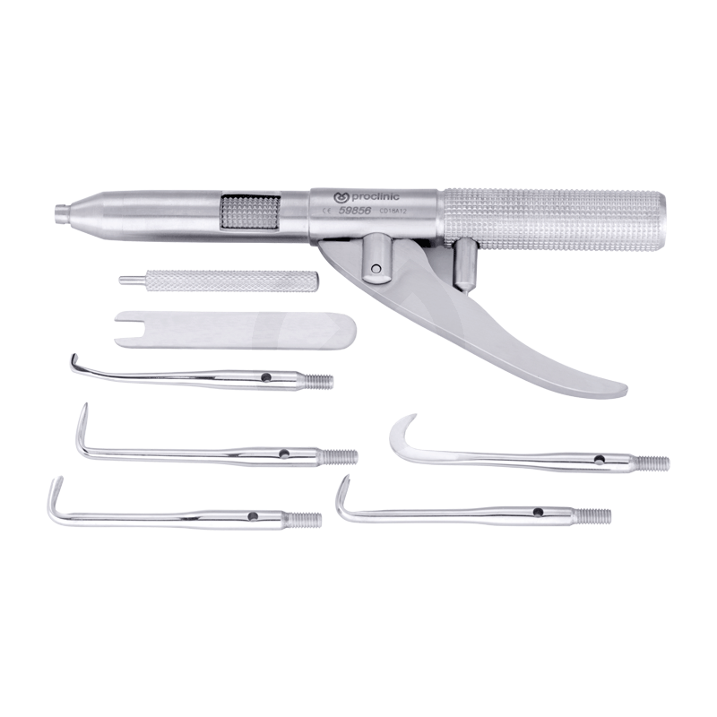 Removedor de coronas y puentes mecánico. Incluye 5 puntas desmontables y 2 llaves para montar y desmontar las puntas.