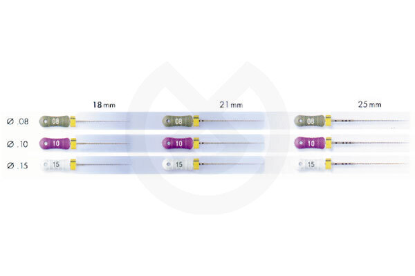 Limas C+ Dentsply para la instrumentación inicial de los canales radiculares. Estos instrumentos con una resistencia a la torsión mucho más elevada que las limas convencionales facilitan la localización de los orificios canalares y el fácil acceso al tercio apical. La punta de sección piramidal facilita la inserción durante la cateterización. Marcas profundas en el instrumento permiten posicionar el tope de silicona con exactitud y es más fácil determinar la longitud trabajando con RX. La sección cuadrada ofrece mayor resistencia a la deformación. Tres longitudes, 18, 21 y 25 mm, permiten óptima eficiencia en todos los casos clínicos. Los surtidos contienen 6 unidades con 2 del nº 08, 2 del nº 10 y 2 del nº 15.