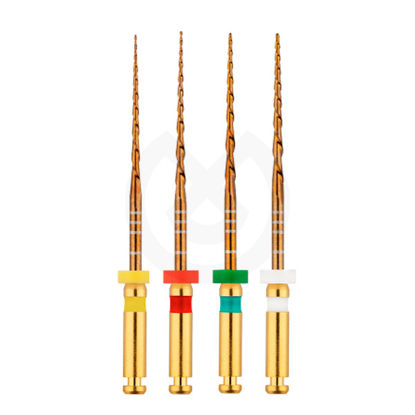 Sistema de lima única reciprocante con tratamiento térmico gold que se caracteriza por la ausencia de memoria de forma. Conicidad del 5%.