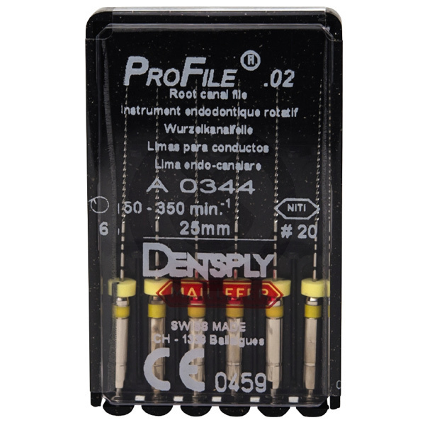 Los instrumentos Profile ofrecen una seguridad máxima debido a su diseño de ''Radial Land'' no cortante y a la sección en triple U. El diseño de múltiples conicidades de Profile, ofreciendo conicidades de 2 a 8%, le permite tratar con éxitos los tres tercios del conducto usando la técnica crown-down. La alta flexibilidad de estas limas de acabado permite una preparación suave del conducto, especialmente en el tercio apical. Fabricados en una aleación de Níquel-Titanio, tienen como fin la limpieza y preparación de todas las zonas del sistema de conductos radiculares e incorporan numerosas características innovadoras, permitiendo que la preparación del conducto sea simple y rápida. Están diseñados para trabajar con micromotor de baja velocidad, de 150 a 350 r.p.m. y especialmente para la técnica ''Crown-Down''.