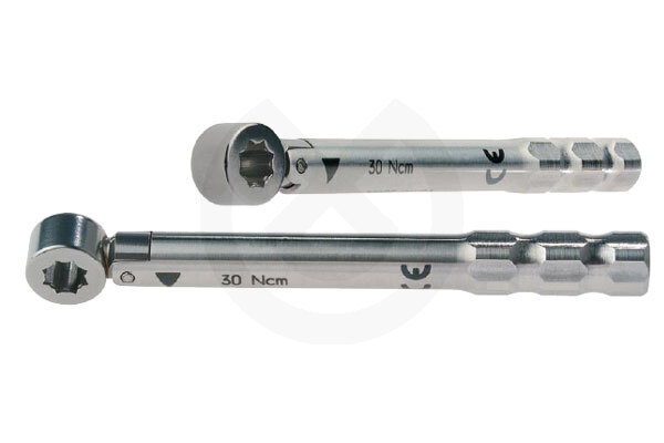 Finalidad: Carraca dinamométrica para la adecuación del torque al apretar la prótesis. El torque para la prótesis será en todos los casos de 30 Ncm de par de apriete.