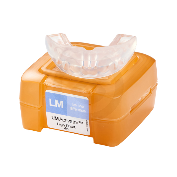 LM-Activator™ High Short Modelo con una sección molar más corta para pacientes a los que aún no les han salido los segundos molares. El modelo High es más grueso en la zona de los segundos premolares y molares. Esta específicamente diseñado para tratar los casos de mordida abierta esquelética y dentoalveolar. Se suministra en una caja naranja.