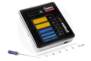 Pequeño tamaño, grandes beneficios.El PROPEX PIXI es un localizador de ápices en miniatura diseñado porDentsply Maillefer, que ofrece grandes ventajas a pesar de su pequeñotamaño:puede llevarse dentro de un bolsillo durante el tratamiento, es fácil dealmacenar y de transportar, siendo además preciso y fiable.PROPEX PIXI proporciona control y confort gracias a la tecnología multi-frecuencia.Funciona en conductos radiculares secos y húmedos, sin necesidad decalibrar o ajustar previamente a cero.Control dual de la progresión de la lima: control visual y control delsonido progresivo con 4 niveles de volumen.
