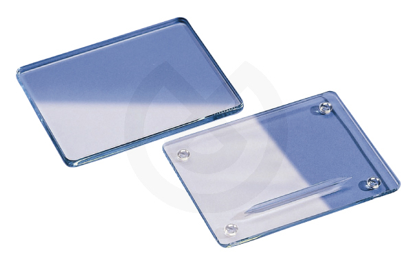 160x120x6 mm. En cristal resistente. Con patas de silicona antideslizamiento y ranura para disolventes de mezcla.