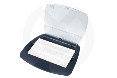 Loseta de mezcla homogénea y difundible para cerámica de alta tecnología, provista de cavidades y humidificación continua. 12 cavidades grandes y 5 pequeñas ofrecen suficiente espacio a fin de poder trabajar de manera estructurada. Tamaño 'XL': 220 x 120 mm