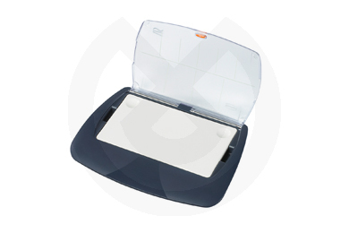 Loseta de mezcla difundible para cerámica de alta tecnología, provista de una humidificación homogénea en toda la superficie. Reparto individual del espacio gracias a una gran superficie de trabajo con dos cavidades vidriadas. Tamaño 'S': 159 x 90 mm.