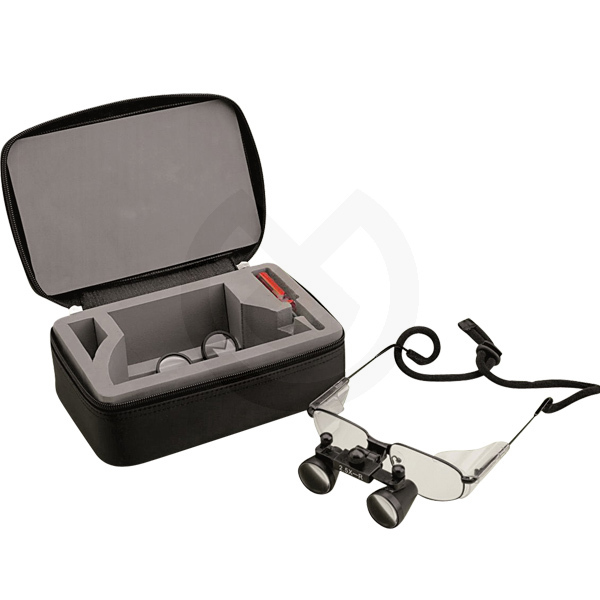 La lupa cuentan con protectores para evitar el rayado de la lente. Las lentes están tratadas para evitar la aberración cromática. La montura dispone de dos escudos laterales de protección contra salpicaduras. Se recomienda el uso de estos escudos junto con una mascarilla. Se incluye en el precio un práctico estuche de vinilo.