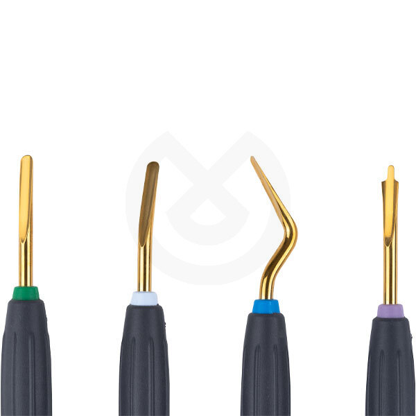 - Mango tipo Pen para incrementar la sensación táctil. La empuñadura ofrece un excelente confort y visibilidad para lograr exodoncias atraumáticas y controladas.