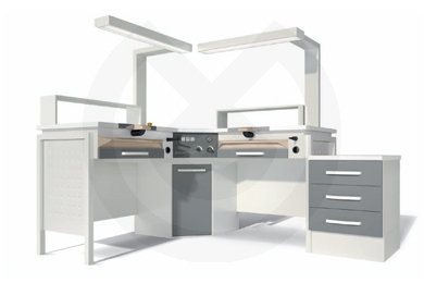 La nueva linea de mobiliario para laboratorios dentales, combina un moderno diseño, funcional, fabricado con materiales muy resistentes como el acero electro-galvanizado y pintado, encimeras de acero inoxidable o de madera. Una gama completa de mesas, muebles modulares, campanas y accesorios permite personalizar cualquier área de trabajo.