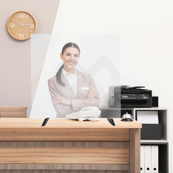 Este modelo de mampara está diseñado para ser utilizado como barrera protectora, con apoyo en escritorios compartidos frontalmente, que ayuda a disminuir el riesgo de contagio.