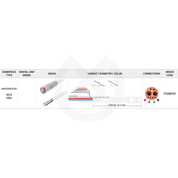Bien Air mc3 micromotor hose compat./turbine hose,1500mm,6 way,open end