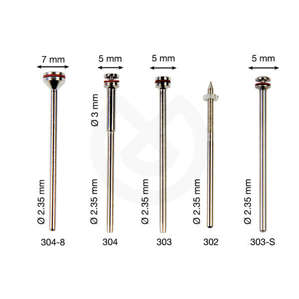 Mandril para discos 303-S, Acero inoxidable, mango Ø2,35 mm y cabeza de 5 mm. 10 unidades.