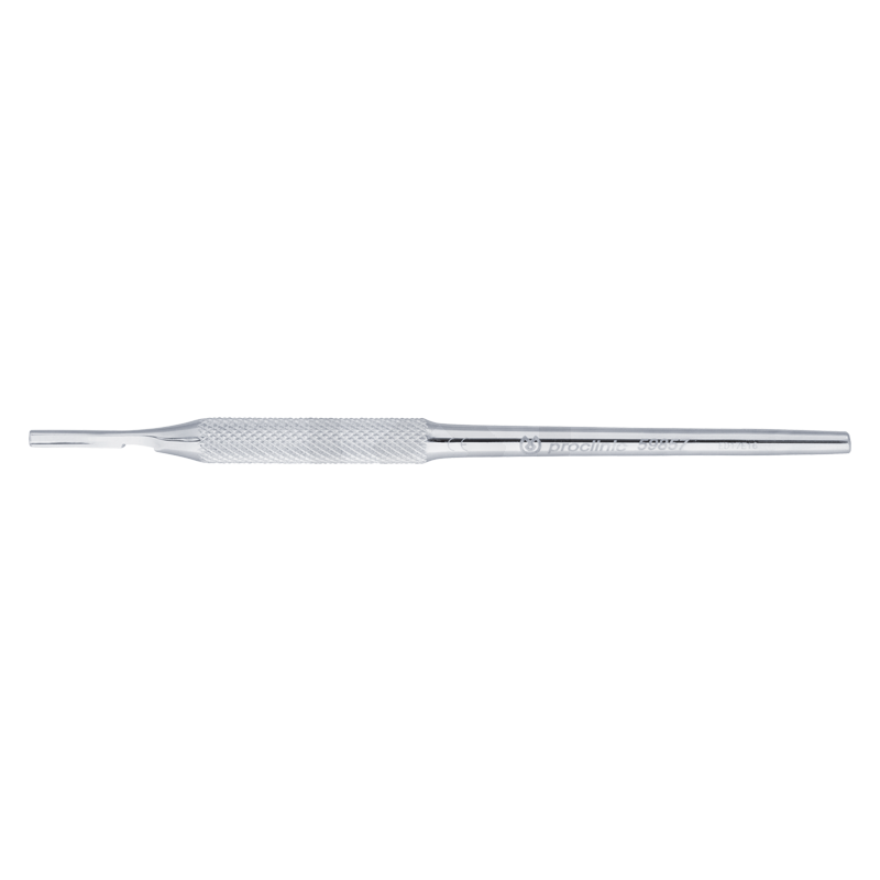 Mango de bisturí recto con mango redondo. Fabricado en acero. Esterilizable en autoclave.