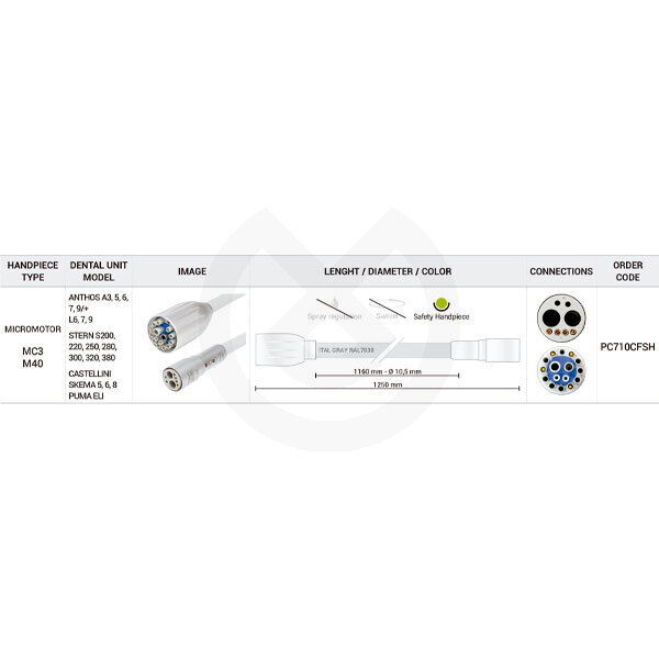 MANGUERA DE 1160 mm PARA MICROMOTOR BIEN AIR MC3 EN EQUIPOS CEFLA CON SAFETY H