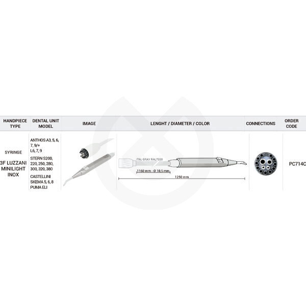 Inox Luzzani MINILIGHT 3F syringe hose,1160mm,for Anthos,SterW,Castel