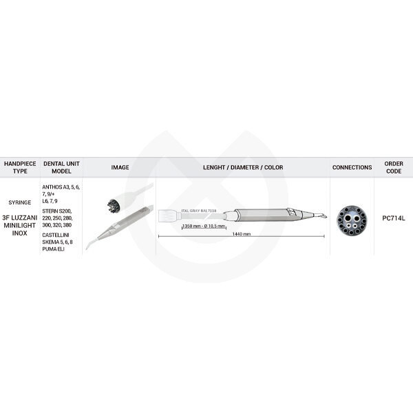 Inox Luzzani MINILIGHT 3F syringe hose,1350mm,for Anthos,SterW,Castel