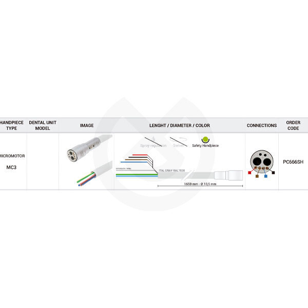 Los contactos dorados, químicamente estables, garantizan una alta conductividad eléctrica y el máximo rendimiento de la pieza de mano.