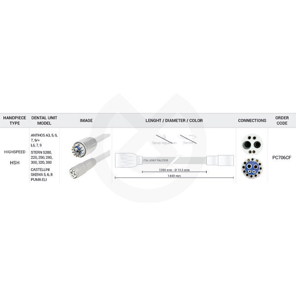 Las mangueras dentales para las unidades dentales de D-Device están hechas de silicona; son libres de látex y cumplen con el sistema de calidad UNI CEI EN ISO