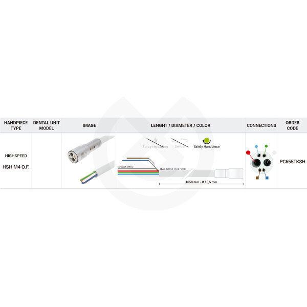Los contactos dorados, químicamente estables, garantizan una alta conductividad eléctrica y el máximo rendimiento de la pieza de mano.
