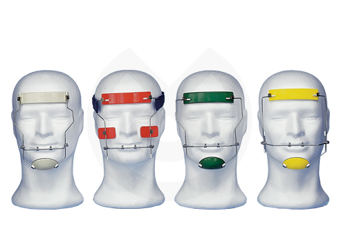 Grande con regulación vertical. Indicada para el tratamiento de las retrusiones maxilares, los prognatismos mandibulares y de las pa latosquisis. La modificación de las relaciones entre el maxilar y la mandíbula facilita el sucesivo tratamiento ortodóntico. Enteramente construida en acero inoxidable y resina atóxica, puede ser ajustada dimensionalmente para adaptarla a cualquier necesidad, con regulación horizontal. Todos los topes están realizados con tornillos 'Allen'. El kit de la máscara facial incluye: 1 máscara, 1 llave Allen y un manual de instrucciones para el paciente, junto con una funda blanca y lavable para guardar todos los elementos del kit.
