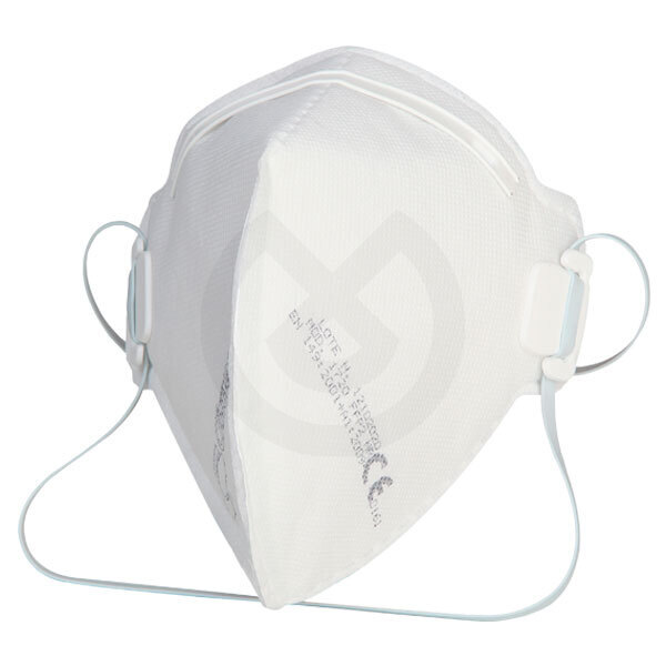 Mascarilla autofiltrante FFP3 sin válvula, para reducir la adquisición de enfermedades que se transmiten por microaerosoles. 98% de filtración mínima de partículas aéreas con tamaño ≥ 0,3 μm. Un buen ajuste de la máscara al contorno de la cara es esencial para garantizar una estanqueidad adecuada, imprescindible para un buen funcionamiento de la máscara.