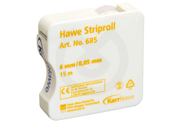Tira de poliéster en un cómodo dispensador para todos los materiales de obturaciones de piezas anteriores. 0.050 mm de espesor.