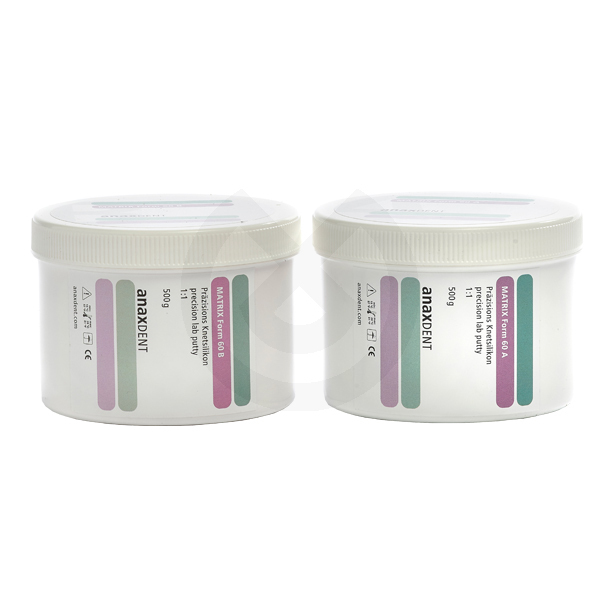 Silicona por poliadición con una dureza Shore final de 60, fácilmente maleable. El alto contenido de aceite de silicona impide a la matriz secarse rápidamente. Permanece estable durante varios meses. Su color naranja ofrece un contraste interesante y es fácil de pulir, escanear o cortar. Sirve para todo tipo de aplicaciones clásicas en el laboratorio o en clínica.