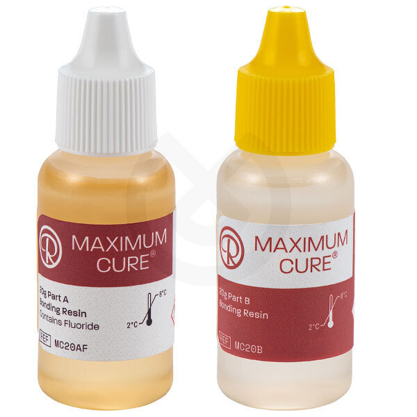 El Sellador Maximum Cure se fijará en una capa fina. Un sistema único catalizador previene de interferencias de oxígeno durante la polimerización. Toda la superficie lingual o labial del diente puede ser sellada. Está formulado con un monomero patentado. De curado químico, el sellador Maximum Cure permite sellar múltiples dientes en el tiempo que sellaría un diente con un material fotopolimerizable.