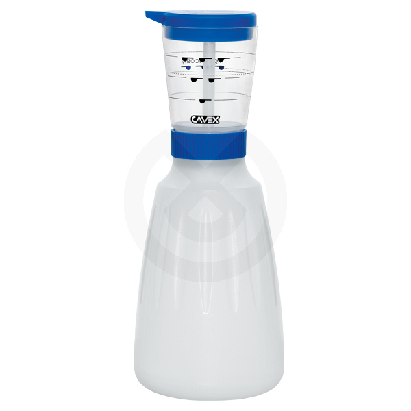 Medidor de agua para la mezcla de alginato. Tapa, color azul, con apertura fácil.