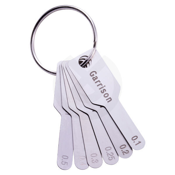Galga con 6 medidas (0.1, 0.2, 0.25, 0.3, 0.4 y 0.5mm)
