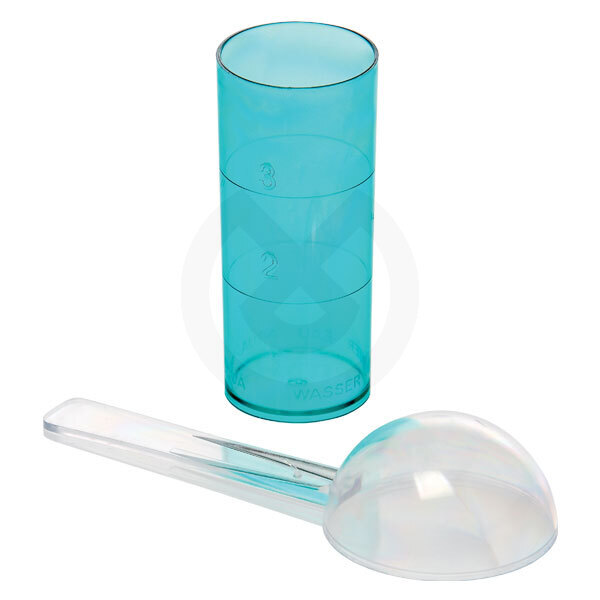 1 cuchara para medir polvo + 1 vaso para medir agua