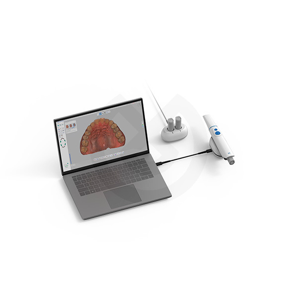 La experiencia de uso es intuitiva y fluida. Los botones integrados en la pieza de mano permiten iniciar, detener y controlar las exploraciones —panorámica, zoom y rotación— sin interrumpir el flujo de trabajo. Los indicadores LED de estado y el renderizado en modo brillante ofrecen una visualización 3D ultrarrealista en tiempo real.