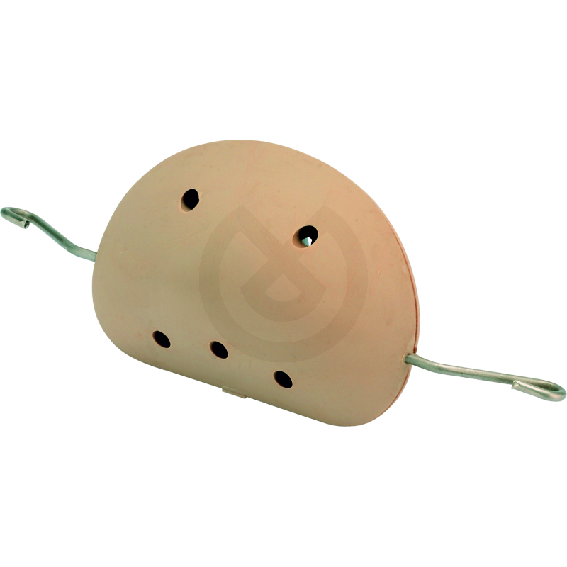 Mentonera de dos ganchos. Recomendada para controlar el prognatismo mandibular y el Ángulo goniaco. El interior de la mentonera lleva gomaespuma forrada con ante para que se acople a cualquier forma de mentón sin riesgos de alergia. Color Piel. Los agujeros permiten una buena ventilación evitando problemas causados por el sudor.