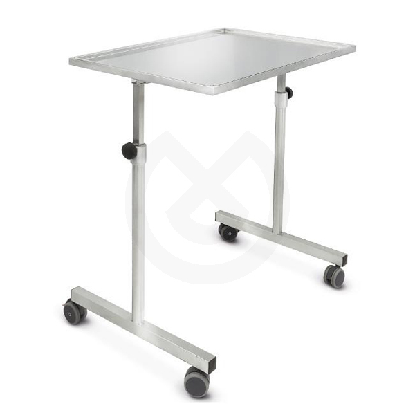 Puente hecha de acero inoxidable 18/10, regulable en altura, que se caracteriza por una superficie amplia y sólida, esto le permite al médico tener a mano todo el material que necesita para funcionar bien sin la ayuda de más bases de apoyo.