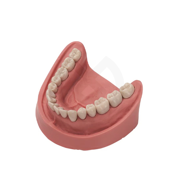 Modelo dental con dentadura inferior completa y encía blanda.
