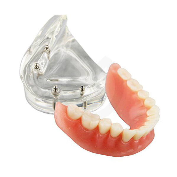 Modelo de demostración con 4 implantes genéricos y una sobredentadura con conexión de clip.