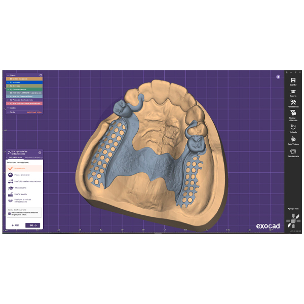 Con el módulo de esqueléticos podremos diseñar cualquier estructura removible para el diseño de rehabilitaciones parciales como por ejemplo el esquelético metálico o de peek para pacientes con zonas edéntulas.
