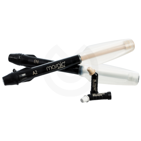 El composite universal Mosaic equilibra belleza y funcionalidad para unos resultados duraderos y naturales. Se puede utilizar para cualquier tipo de restauración, ya sea básica o compleja. Su fórmula nanohíbrida está compuesta por vitrocerámica de zirconio y sílice y sílice de 20 nanómetros. La carga del relleno es del 68 % del volumen para los tonos de dentina y del 56 % para los tonos de esmalte. El excepcional manejo, la estética natural y la gran durabilidad del composite Mosaic permite crear restauraciones de la máxima calidad.