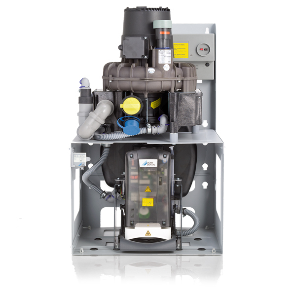 Aspiración seca con recuperador de amalgama (3/5 Puestos). 900 l/m. Sin Cubierta 65 dBA. Con Cubierta 58 dBA.