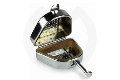 Fabricada en metal niquelado altamente resistente a la corrosión. Es posible disminuir las dimensiones interiores mediante el empleo de unos reductores de goma. 100 x 83 x 44 mm.