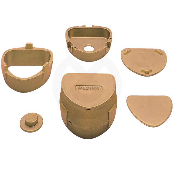 Formada por tres piezas y pivote expulsor de escayola por presión en la placa inferior. Dimensiones interiores: 94 x 82 x 57 mm. Material: Latón Formada por tres piezas y pivote expulsor de escayola por presión en la placa inferior. La mufla más utilizada