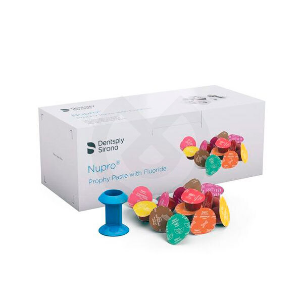 La pasta de profilaxis Nupro ofrece una amplia gama de sabores para adaptarse a las preferencias de los pacientes. Su fórmula patentada garantiza un rendimiento constante y sin salpicaduras. Es fácil de aclarar y ofrece excelentes resultados de eliminación de manchas y pulido. Las diferenctes opciones de grano están codificadas por colores. Sin gluten. Disponibles con flúor y sin flúor.