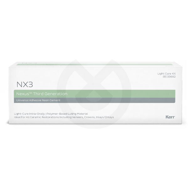 NX3, es un cemento de resina universal indicado para todas las aplicaciones indirectas, con una química innovadora para unos resultados estéticos incomparables y una gran adherencia y versatilidad. Las opciones del sistema de dispensación incluyen una jeringa de automezcla para indicaciones de polimerización dual y un cemento fotopolimerizable para los casos en los que es necesario un tiempo ilimitado de trabajo.