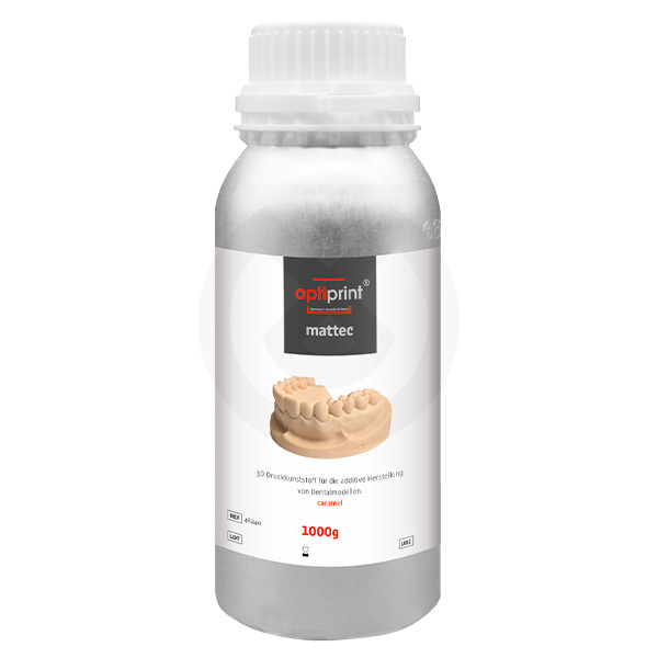 Optiprint mattec es el material ideal para la producción de modelos completos y centrales en impresión 3D. Gracias a su composición especial, consigue una superficie que se asemeja casi a la perfección a la de un modelo de escayola tradicional.