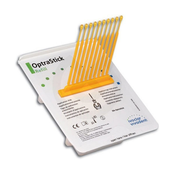OptraStick es un instrumento de colocación que presenta una punta adhesiva y flexible. La punta permite recoger restauraciones y pequeños objetos de todo tipo, transportarlos y colocarlos de forma rápida y sencilla. OptraStick es adecuado para el manejo de inlays, onlays, coronas y carillas de diferentes materiales, por ejemplo, IPSEmpress, IPS e.max, d.SIGN IPS, en línea IPS y SR Adoro, así como para restauraciones de metal y joyas dentales, por ejemplo, Skyce.